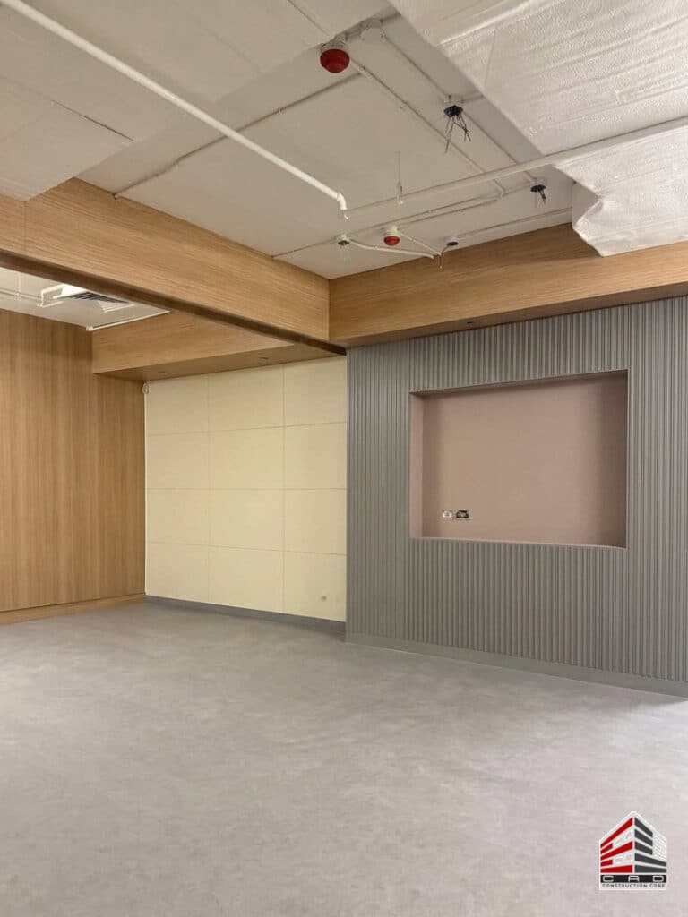 An office fit-out project transforms an empty or unfinished commercial space into a fully operational workplace by installing partitions, ceilings, flooring, lighting, and architectural finishes.